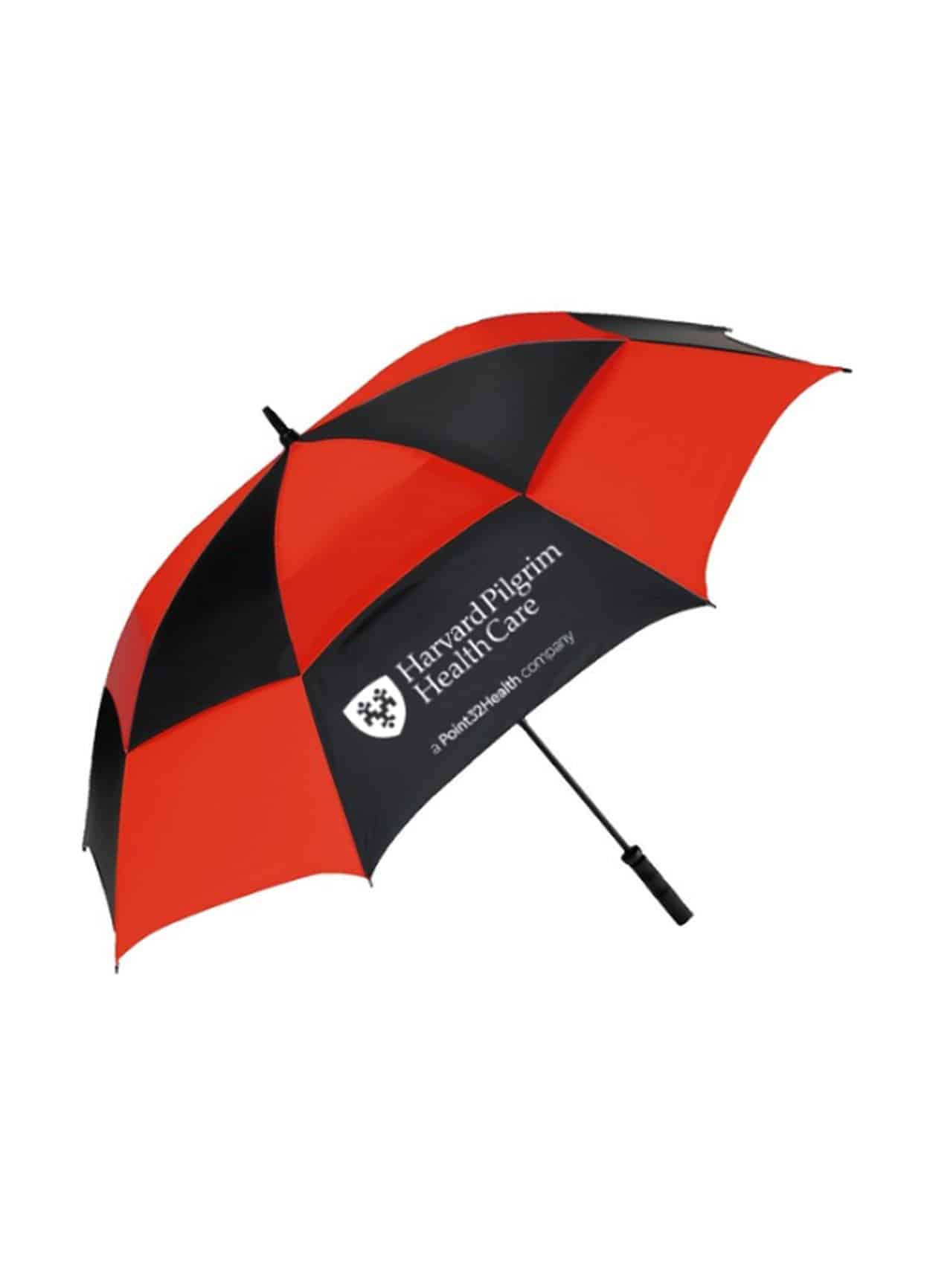 The ultimate golf umbrella for wind and rain! Designed to withstand wind gusts up to 60 mph, featuring vented canopy technology which helps secure the umbrella by reducing air resistant in strong wind gusts. Made of nylon with a 62″ arc, fiberglass shaft and Duraflex (TM) fiberglass ribs, a black rubber spray pistol grip handle and matching nylon sleeve.